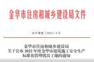 广宏建设四个工程项目获评“2022年度金华市建筑施工... 2022-11-14