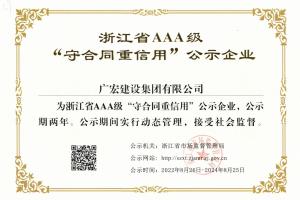 公司蝉联省AAA级“守合同重信用”企业称号 2022-10-09