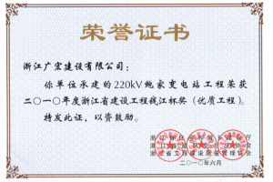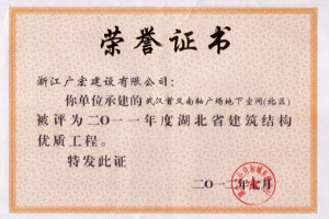 荣获2010年度浙江省建设工程钱江杯奖(优质工程)